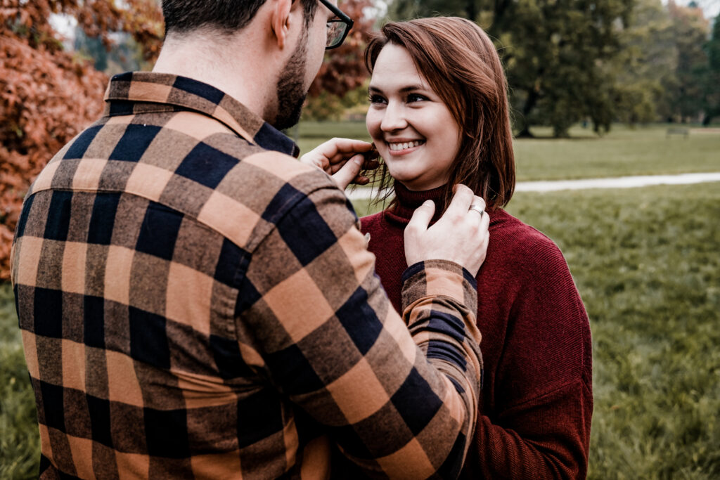 Když jsme focení domlouvali jen pár dní s předstihem, už jsme tušili, že počasí nemusí vyjít. Ráno pršelo, tak jsme ho o hodinu odložili, kdyby se to náhodou třeba zlepšilo. A taky jo. Jen jsme začli fotit, jako mávnutím proutku jsme měli, alespoň pro mě, ty nejlepší podmínky. Proto říkám pořád – počasí se netřeba bát. Sluníčko na focení ideální není a kvůli malýmu deštíku nebo zataženu opravdu focení netřeba rušit. Naopak si myslím, že výsledná atmosféra je prostě lepší, než když všem peče na hlavu. Všechno má pro a proti, ale já mám vždycky radost, když je trochu mlha nebo pod mrakem.