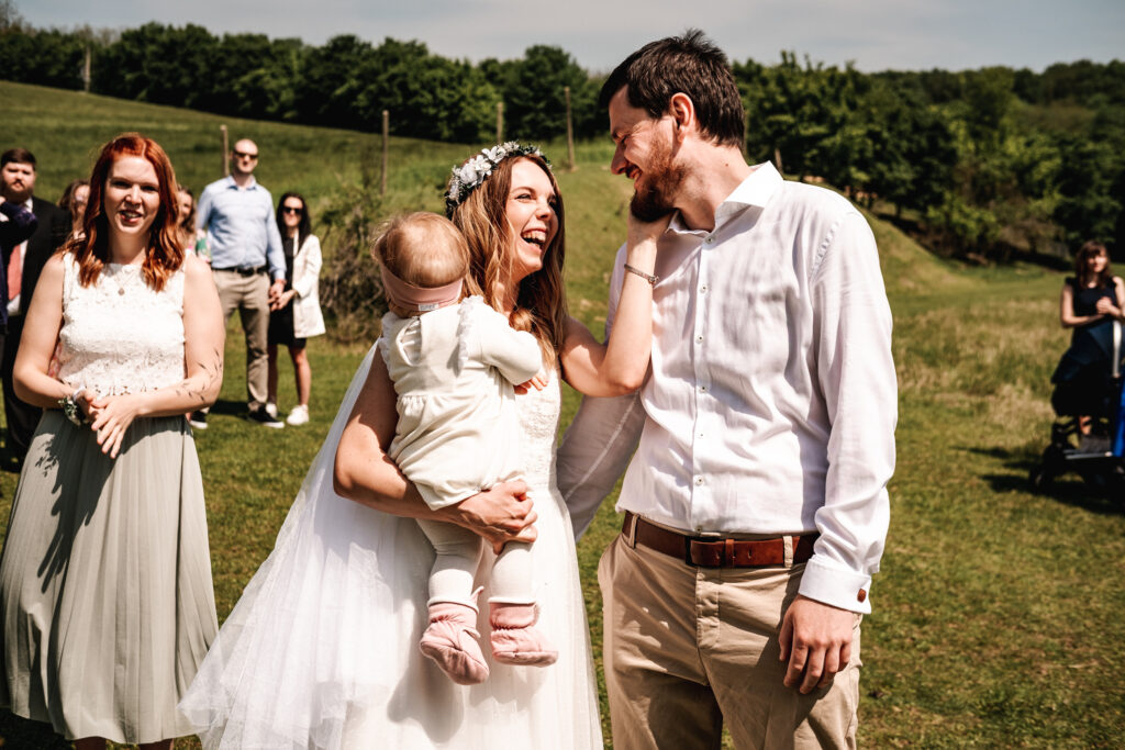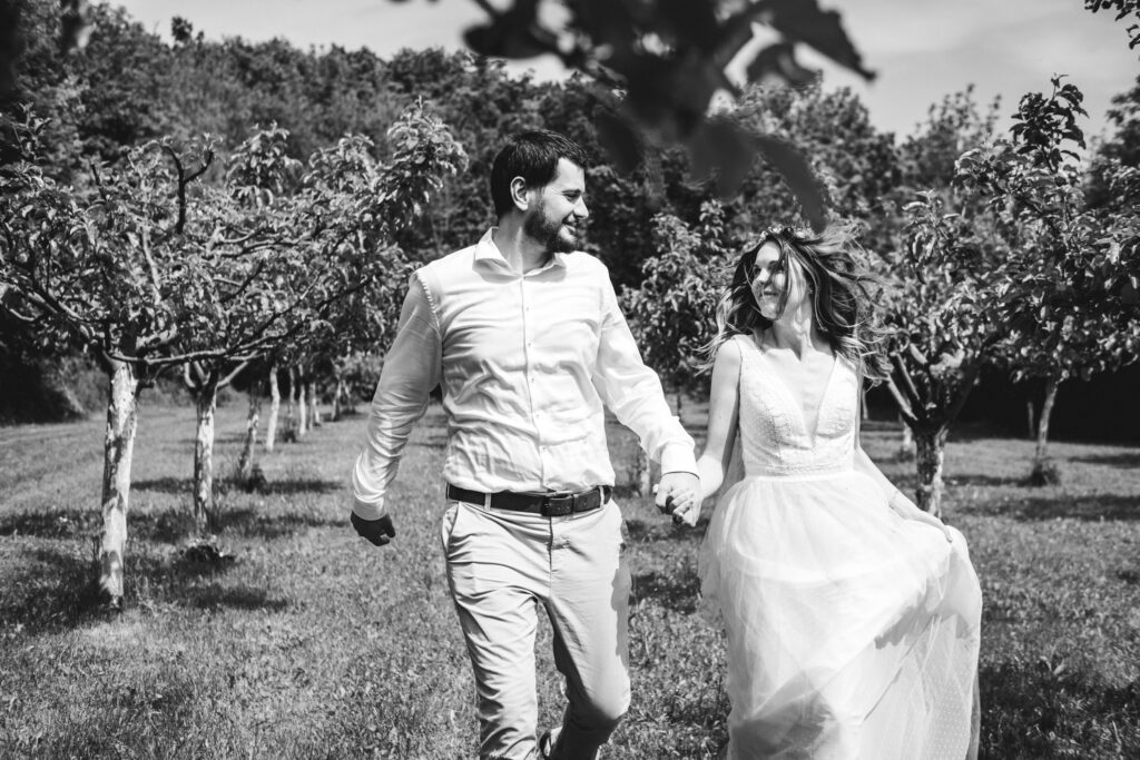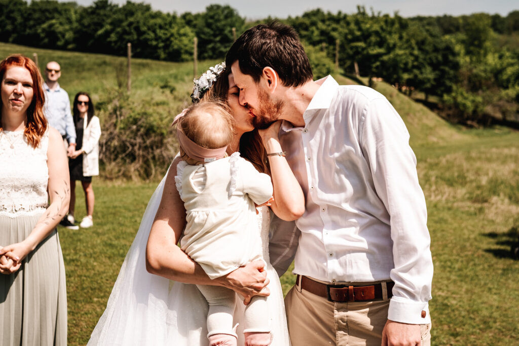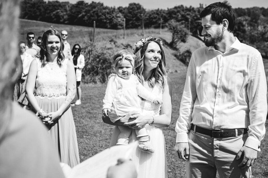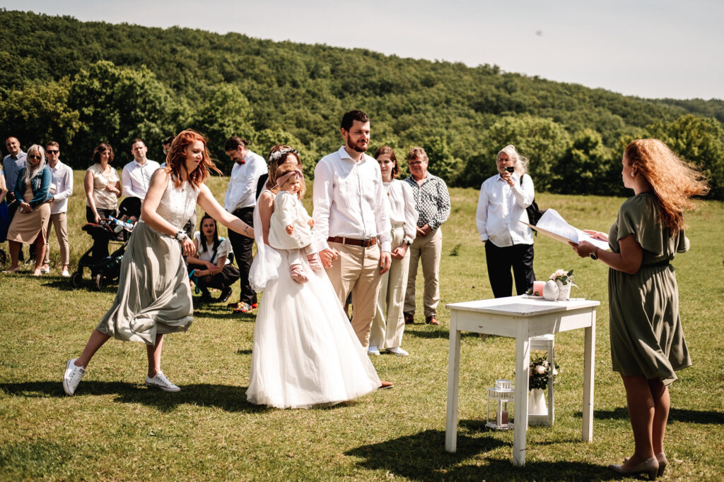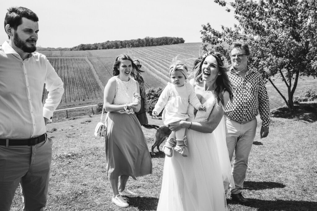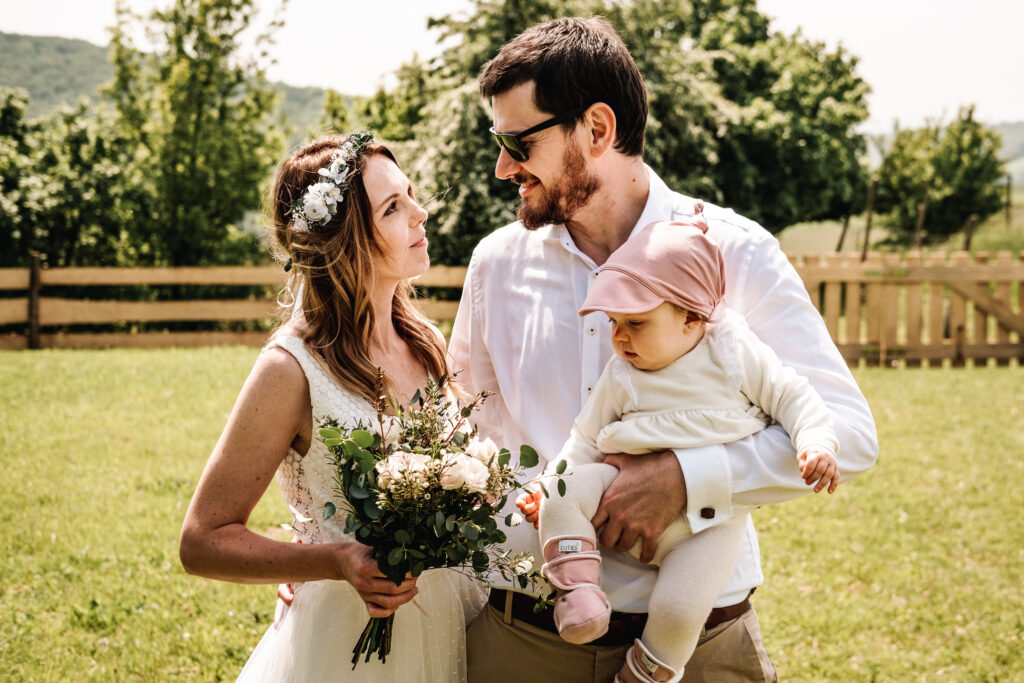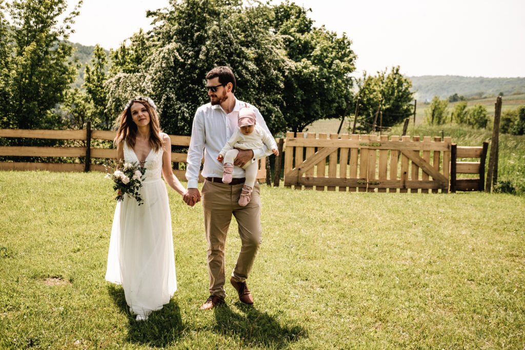 A zase ta jižní Morava. Tentokrát jsem fotila mladý rodiče, kteří se chtěli vzít v přírodě, co nejvíc neformálně. Tam, kde je výhled na vinice, kde se mohli všichni pokochat výhledem z Ovčích teras. Tam, kde se farma s alpakama mísí s ovocnýma sadama a pěkným posezením. Káťa a Pepa jsou ukázkový příklad toho, že svatba nemusí být jedna velká estráda a je fajn se vzít v pohodě a bez velkých večírků.